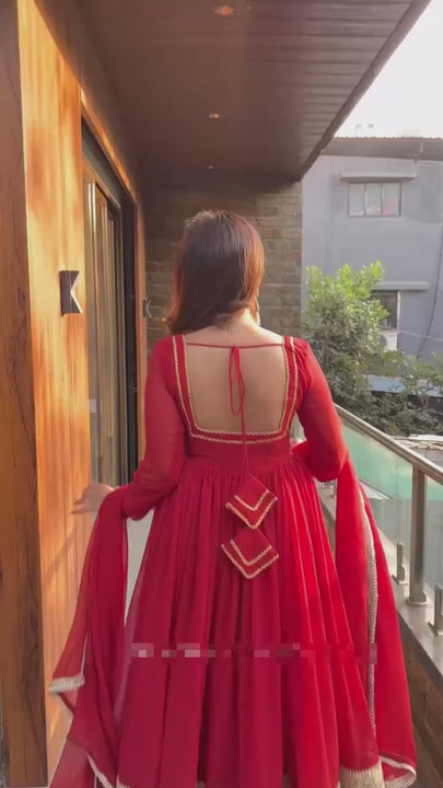 Product Overview: Make a grand entrance with our latest Designer Anarkali Suit in a stunning new fancy style. Crafted from premium Heavy Faux Blooming fabric, this vibrant Red ensemble is designed for elegance and ease. Whether itβs a wedding, a festive celebration, or a high-end party, this fully stitched gown provides a flattering silhouette and a luxurious feel.